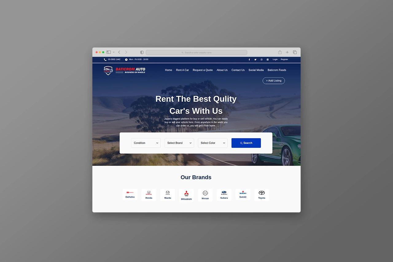 BaticromAuto has rapidly grown into one of Japan’s most trusted vehicle platforms—offering car rental, car buying, and car selling services under one unified system. Whether customers want to rent a car, purchase a vehicle, or list their own car for sale, BaticromAuto delivers a smooth, transparent, and modern digital experience.
