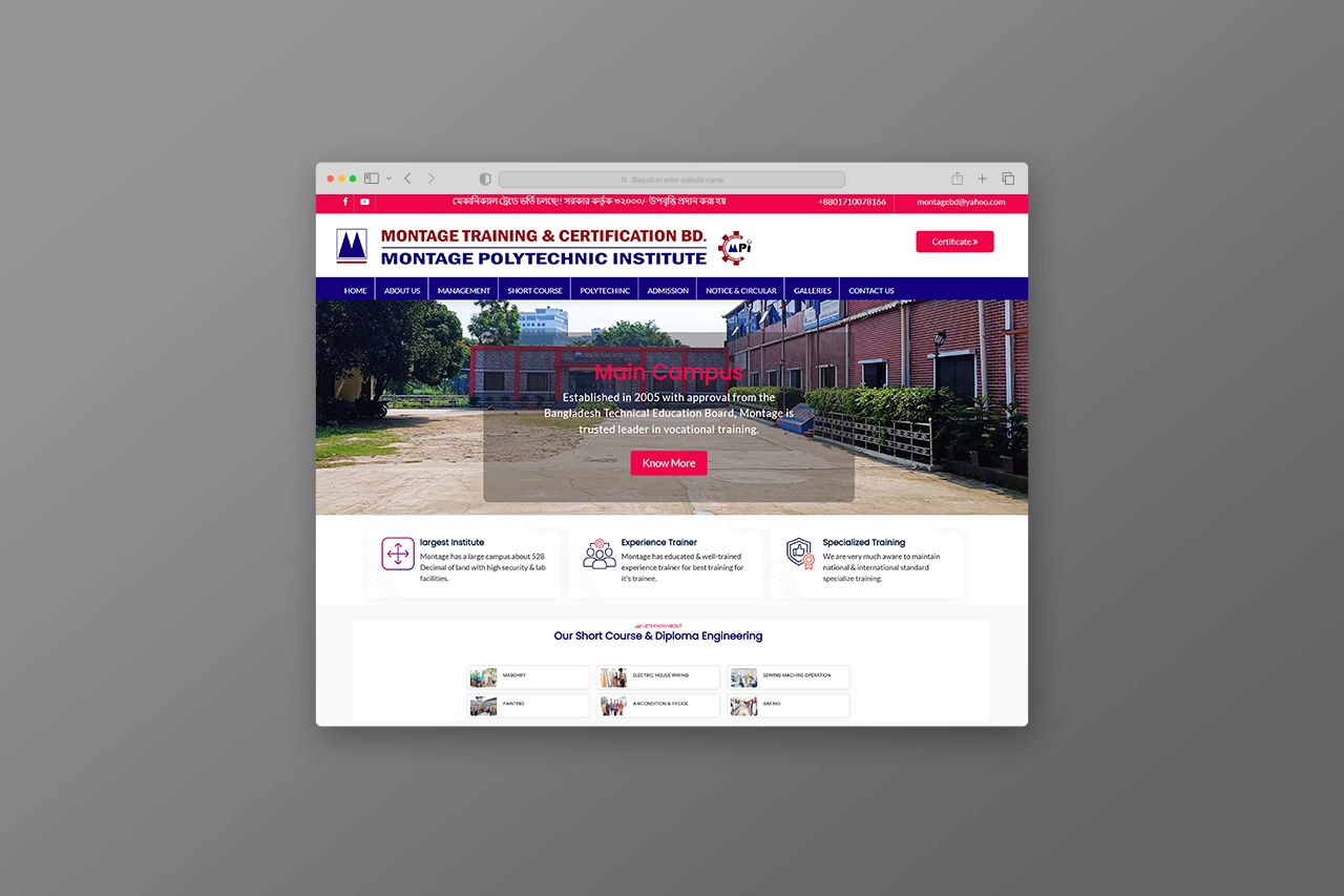 Yes Global Tech delivered a fully-featured, modern, and trustworthy institutional website that perfectly reflects the legacy and educational excellence of Montage & Certification Bangladesh.
